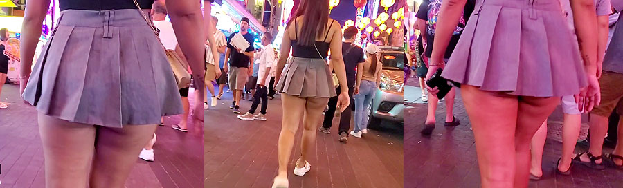 The babe in this video is out wearing a super short mini-skirt while walking the streets. Luckily we are there to film because her dress is so short it shows a hint of her butt cheeks as she walks!