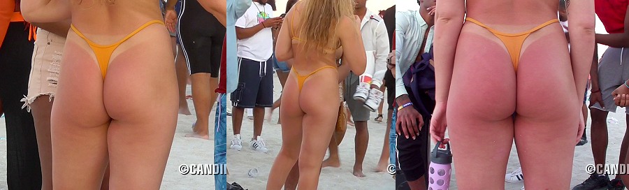 An ass so nice you won't notice the sunburn! We catch this sexy blonde walking around showing her tight ass in a thong, you'll definitely want to see this!
